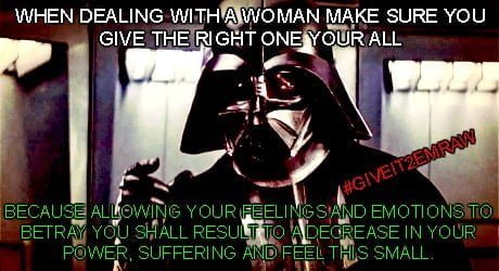 Not sorry to tell you guys but yep, it even happened to Lord Vader. Darth Vader slowly found himself falling in love, but in the same breath found himself feeling like an idiot. Why? You’ll have to watch the video. Whats my point though? My point is that, clearly the power, and even presence of a woman who ya feeling would move even the hardest and quite powerful man’s mind, and will have him feeling, doing and or wanting to do things that he never could see possible to doing be it good or bad. I find this video not only to be funny and true, but also very interesting, but that’s just me.
